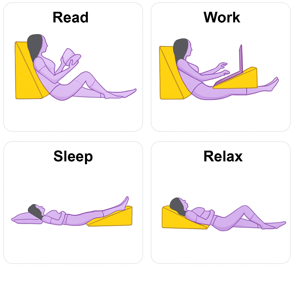 The smart angular wedge design keeps your body aligned, reduces pressure on your back and legs, and makes sitting or lying down much more comfortable. It helps prevent stiffness and supports better posture.